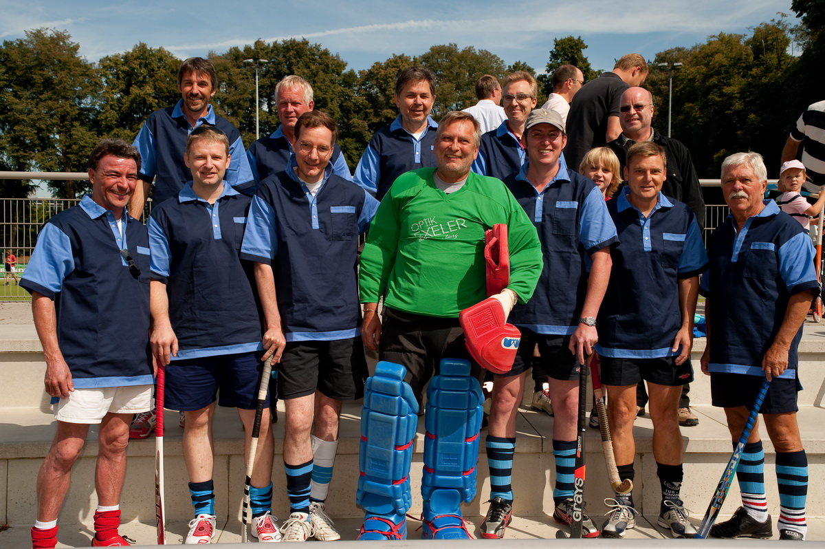 Unser alter Freund Holger, der mit uns schon oft in Breda/Holland beim Old Style Jazzy Hockey Festival mitgespielt hat, hatte uns zum Jubiläums-Turnier der „Alte 1b” von Rot-Weiss Köln eingeladen. Es sollte ein herrliches Hockey-Fest werden, mit Frei-Kölsch, Live -Musik und herrlichem Wetter. Außerdem konnten wir zum ersten Mal unsere neue Hockeykluft ausführen: Ein Traum in Navy- und Royal-Blau. In der Deutschland-Ausgabe von „Sports Illustrated“ wird unsere Mannschaft als „Sexiest Team Alive“ als Centerfold (1) in der Oktoberausgabe abgebildet werden. Ein Vorabzug des Fotos ist bereits am Schwarzen Brett im Clubhaus ausgehängt.