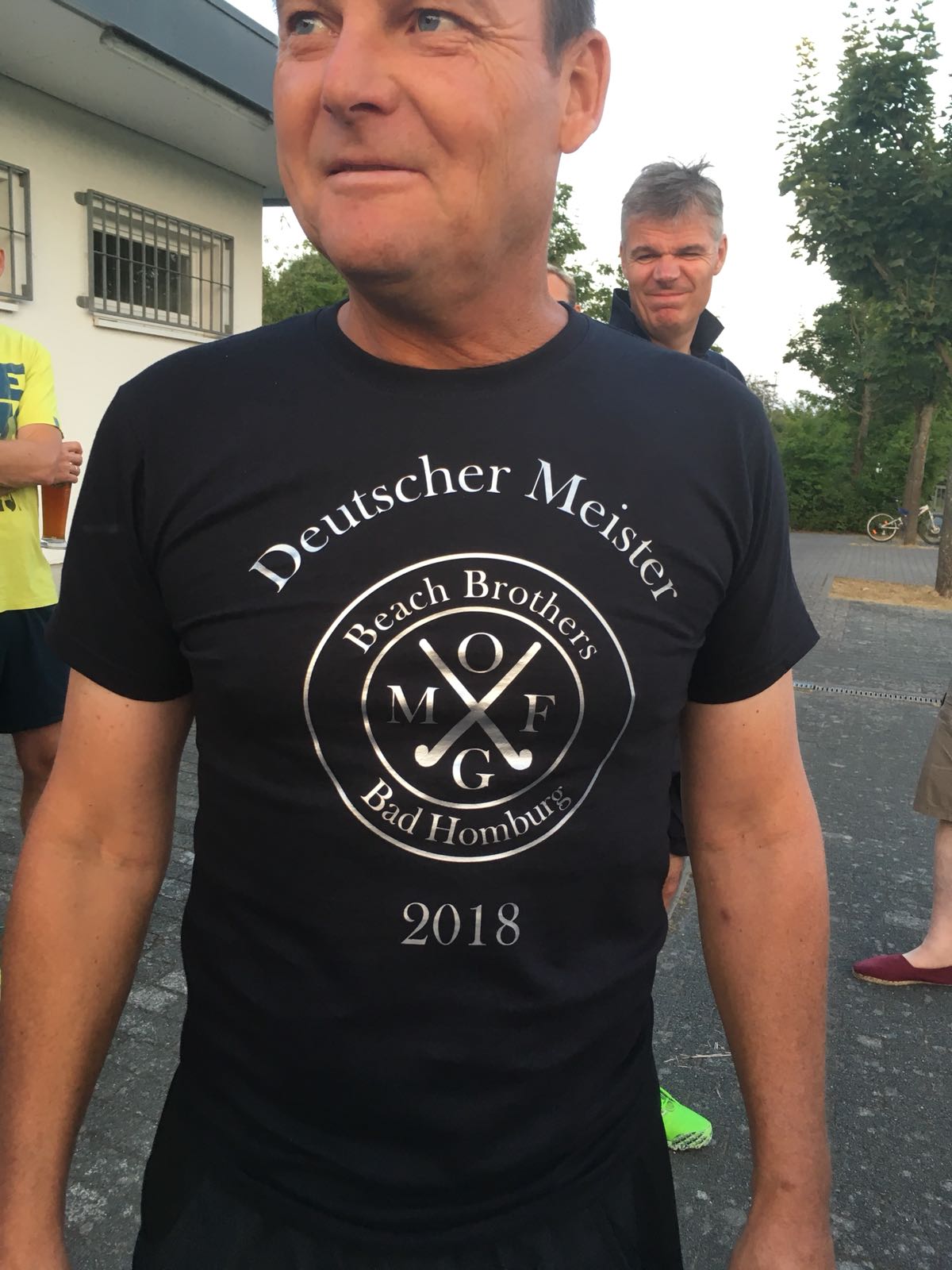 Aber weit gefehlt, wir fuhren mit fünf Feldspielern und Sven im Tor, der – durch die Absage von Hans, der als TW eingeplant war – 36 Stunden vor Abfahrt von seinem Glück erfuhr. Da Ludwigsburg ja nicht so weit ist, und in der Regel daher die Abfahrt Samstagmorgen stattfindet, traf es sich gut, dass wir am Freitag vorher noch als amtierende Deutsche Meister im Beachhockey der Senioren vom Magistrat der Stadt Homburg zur Sportlerehrung eingeladen waren. Wein und Essen umsonst. Was soll ich sagen? Die Augen einiger waren bei Abfahrt 7:30 bei Tim doch deutlich kleiner als sonst, aber der gewohnte Turnierauftakt am Freitag wurde so gut simuliert.