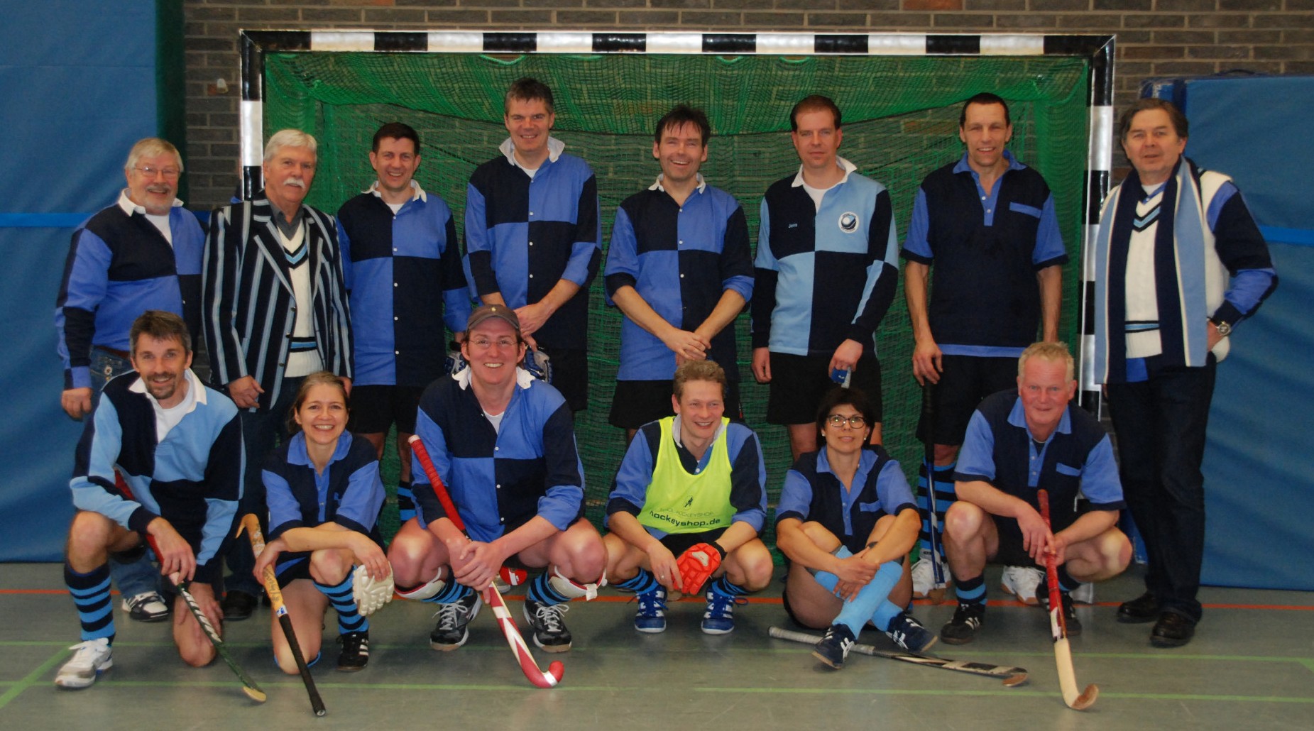 Wie auch in den vergangenen Jahren, haben wir es auch in diesem Jahr wieder geschafft, ein Hallenhockey-Turnier in Bad Homburg auszurichten. Wir riefen und sie kamen, diesmal in Form folgender Mannschaften: German Wanderers, Graue Stars Heidelberg, MTV Kronberg, Offenbacher RV und TV Alzey. Zudem stellten wir auch dieses Mal zwei Mannschaften, um unseren inzwischen zahlreich gewordenen Hockey-AHs/Senioren die nötige Spielzeit zu ermöglichen. Trotz einiger Unzulänglichkeiten – Verlegung des Turniers in die (wenig beliebte) Halle in der Frölingstraße, Elternsprechstunde in der gegenüberliegenden Schule (was zu „leichter” Parkplatznot führte) und dem nicht nachlassenden Winter mit fröhlichem Neuschnee – fanden sich alle mit mehr oder weniger vollständigen Teams rechtzeitig ein. Offenbach mit gefühlt zwei Feldmannschaften und die Wanderers + Graue Stars mit gefühlt zusammen einer Hallenmannschaft. Einige der Jungs dürften es über den Tag wohl auf sieben Spiele gebracht haben. Respekt! Über die Langzeitfolgen wollen wir lieber nichts wissen.
